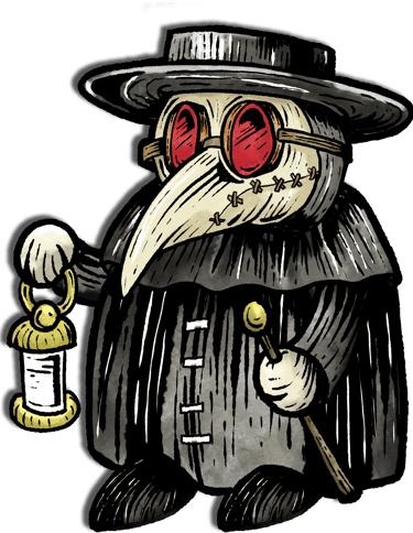 Woodcut style plague doctor for an art project called "A Heart For Darkness"